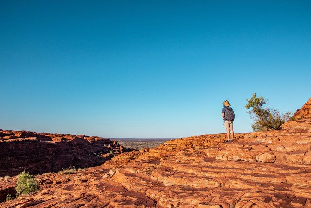 Ok so we couldn’t go all this way without seeing the beating red heart of Australia. That rock being named Uluru or by some Ayers Rock. Leaving Kings Canyon to make our way to Uluru it was a hot 4hrs drive through the desert. And its at this point you’re in proper desert with like dunes, dead animals and dead trees. Everything is RED. Like really red. It’s so red that the clouds themselves have red undersides from the light bouncing off the earth. It’s pretty insane and something you have to experience for yourself. Its such harsh and alien landscape but it is so so beautiful. And it amazed me how much it changed with each hour of driving. Once you’re about 40km from Uluru you will get your first glimpse of the big rock. And woah it is so big!!! Having seen pictures so many times you think you know what you’re in for. But it is very impressive and it protrudes from the flat and red landscape like nothing I have seen before. It boggles the mind how it even got there amongst so much flat nothingness. It’s at this point too that you realise the heat has levelled up again and the air outside of the sweet sweet AC of the car is an actual oven. You look around wondering how does anything survive out here? The trees that are spotted around seem to be curling as if cringing from the heat and the birds are sat around wide mouthed as if holding a silent scream (I think they do this to cope with the heat?). Pulling into Yulara camping ground we found some shade and waited until sunset to get a closer view of Uluru. To get access to the Uluru - Kata Tjuta National Park there is a $38 fee per person for a 3 day pass. We drove in and parked up at the sunset point to watch the show. Sunset and sunrise is the best time to view the rock. With the descending go the sun, the rock face changes colour and it truely is a spectacle of nature. Doing this trip in the heat of summer meant the day was for relaxing or driving from A to B (AC full blast) and the mornings/afternoon were for adventure. As late or as early as possible so to avoid heat exhaustion. Heat exhaustion did strike us a couple of times so really be ready for it as it doesn’t take much for it to happen. Throbbing headaches and just overall sweats leave you feeling pretty awful. So be prepared and drink water with added electrolytes, this helps a lot. The temp was pushing 45C plus each day and to put that in perspective - squatting for a pee in the desert, you can literally feel the heat from the earth burning your butt. You could fry and egg out here or perhaps slow roast some lamb. Aside from all this, the heat and everything else it’s all part of the adventure and the experience. It wouldn’t be the beautiful place it is without it.